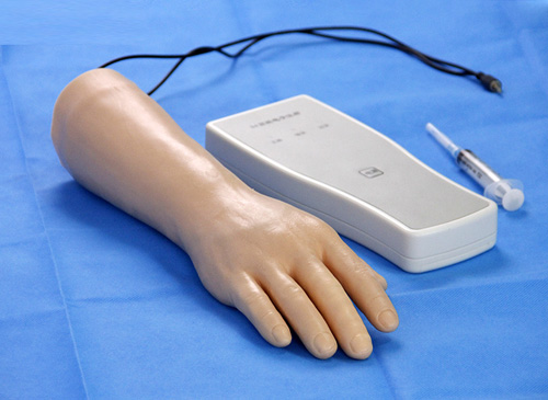 XY-S4高級電子手部靜脈穿刺訓練模型膚質仿真度高,皮膚紋理清晰,具有電子報警裝置,操作者可根據刺入、刺偏、刺穿三種狀態的指示燈提示,隨時調整進針的角度、位置和用力大小。