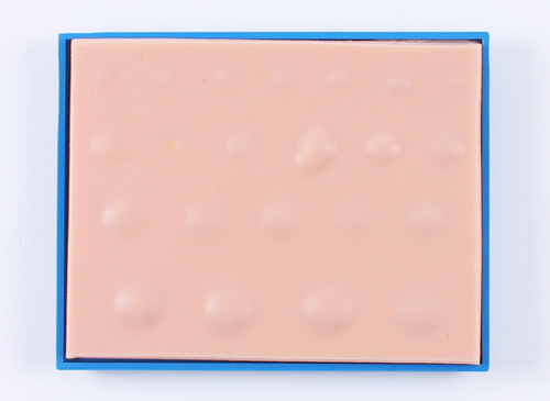■ 由皮膚模塊、墊板和膿腫模塊組成,皮膚模塊置于墊板上方,在皮膚模塊內(nèi)部設(shè)有大小不同、深淺不一的22個膿腫模塊,模擬淺表膿腫和深部膿腫。