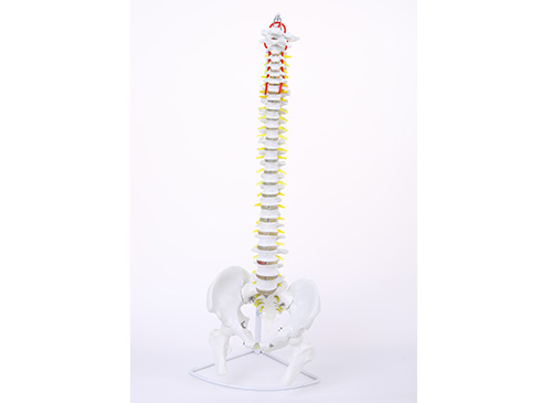 XY-126脊椎帶骨盆和半腿骨模型顯示了每根脊椎的所有主要特征,包括脊椎、神經根、脊椎動脈、分椎間盤、脊柱橫突和脊椎切面,主要特征包括:可彎曲脊椎、骨盆、骶骨、枕骨、脊椎動脈、神經動脈、腰椎間盤和半腿骨等。
