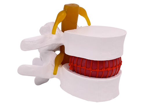 XY-119B腰椎間盤突出演示模型由上下腰椎和椎間盤串制而成一個整體,顯示椎間盤如何突出,可以動態演示過程。