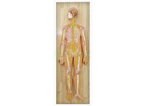 XY-322A神經(jīng)系統(tǒng)模型顯示中樞神經(jīng)腦和脊髓、周圍神經(jīng)等結(jié)構(gòu),包括從中樞發(fā)出到身體各部的脊神經(jīng)(臂從橈神經(jīng)、尺神經(jīng)、正中神經(jīng)、腰叢股神經(jīng)骶叢坐骨神經(jīng)等)等結(jié)構(gòu),共有33個部位指示標(biāo)志。