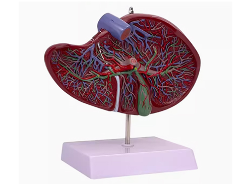 XY-311A肝解剖模型顯示肝的分葉、肝的血管分支和膽囊、膽管系統等結構,以不同顏色表示肝臟內完整的血管網:門血管,肝內肝外膽管。