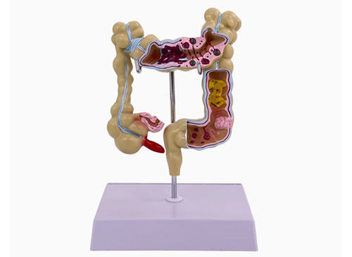 XY-402大腸病變模型展示了各種細菌性腸炎和腺病,包括息肉、腸套疊、腸結(jié)核、克羅恩病、潰瘍性結(jié)腸炎,描述了炎癥或結(jié)核。