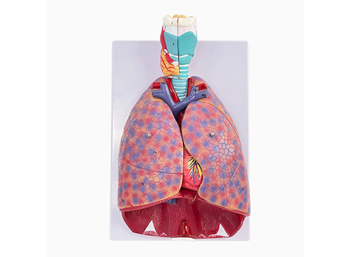 XY-320喉、心、肺模型(呼吸系統模型)由喉正中矢狀切面、心冠狀切面和肺等7部件組成,并顯示喉、氣管、胸腔內心臟、左右肺以及膈上的食道裂孔、主動脈裂孔等結構,共有51個部位指示標志。