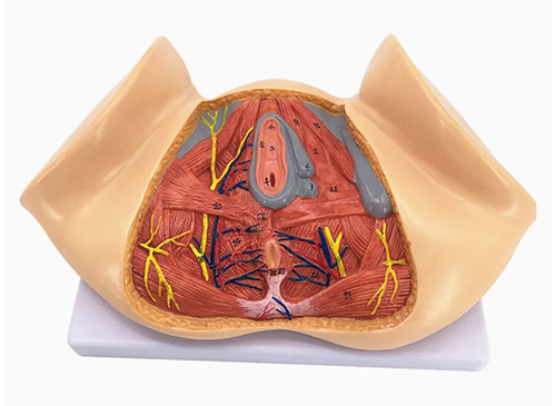 XY-437女性會陰模型顯示女性會陰范圍、前方的尿生殖三角(尿生殖區(qū))、后方的肛門三角(肛區(qū))以及會陰的解剖結(jié)構(gòu)(包括生殖器官、會陰肌、神經(jīng)和血管等),共有20個部位指示標志。