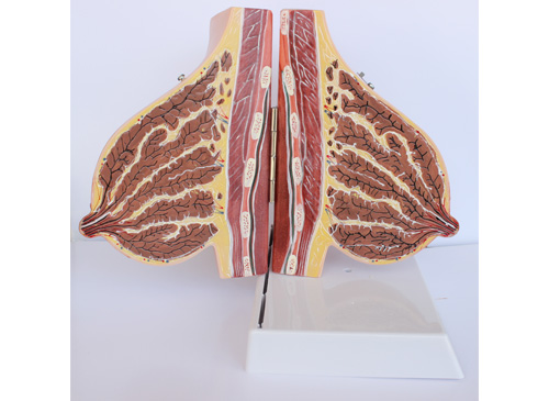 XY-314B哺乳期女性乳房解剖模型由2部件組成,可活動打開,顯示哺乳期女性乳房剖面結構,共有12個部位指示標志。