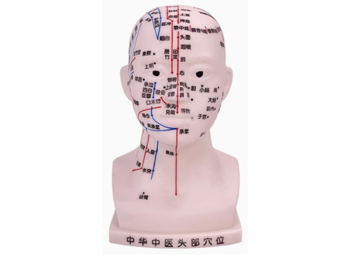 XY-ZJT01針灸頭模型標明了頭部和頸部的所有重要的針灸經絡線和穴位,也標明了中國頭皮針插入孔,以及在主要針灸經絡線上沒有標明的經外穴位如魚腰、印堂、太陽和面部微系統的針灸穴位。